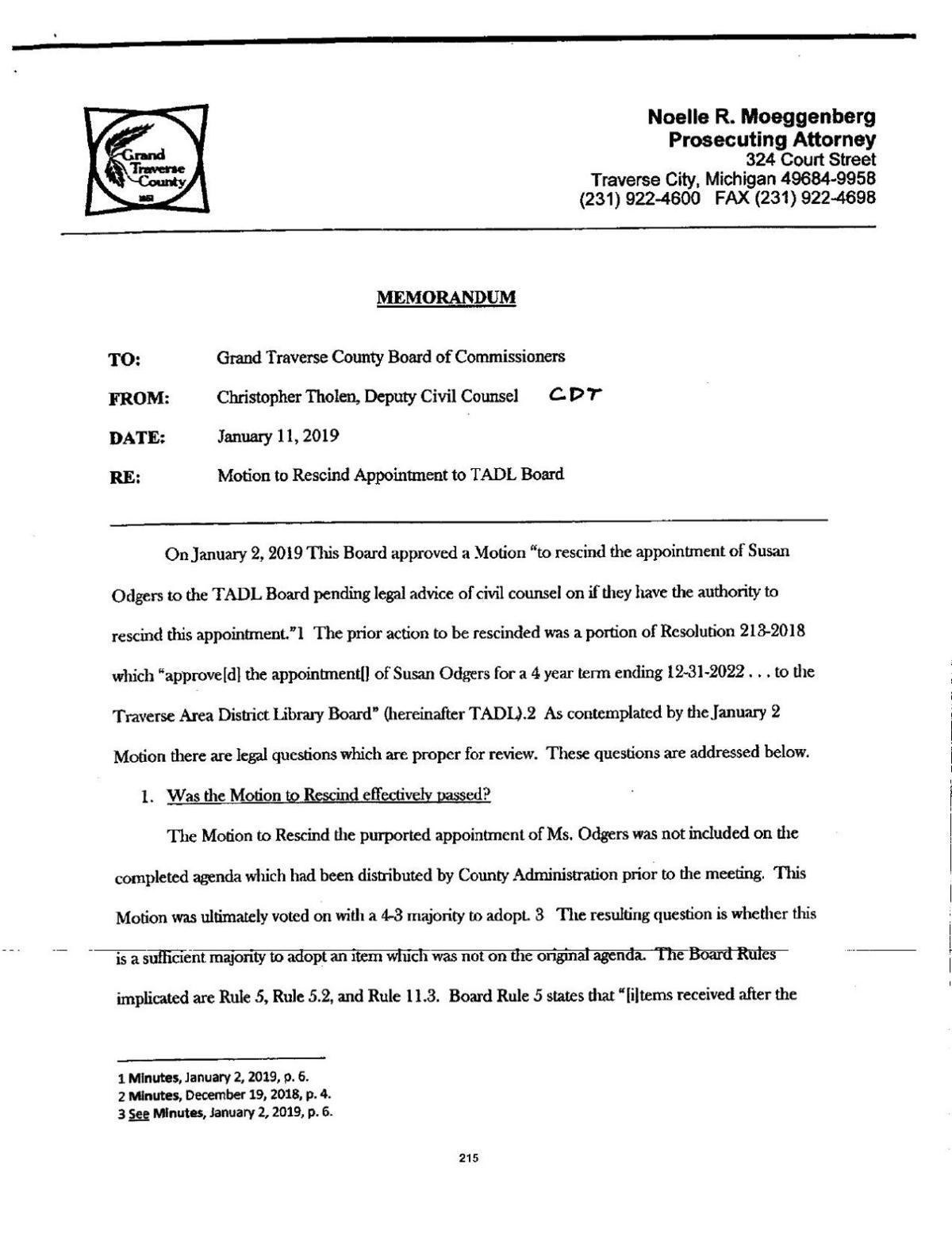 Motion To Rescind Appointment To Tadl Board Legal Opinion Record Eagle Com